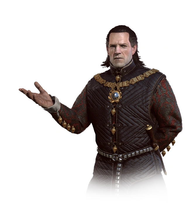 - ھناك أسماء قلیلة في تاریخ القارة تثیر الكثیر من الرعب والاحترام مثل إمير فار إمريس، ودايتهوين أدان ين أيب مورفورد - اللھب الأبیض الراقص على قبور الأعداء، وإمبراطور نیلفجارد، ولورد ميتينا، وإيبنج وجميرا، سيد نازير وفيكوفارو، وحاكم نصف العالم المتحضر والطامح في غزو النصف الآخر. لقد كان من الشخصیات التي شكلت أفعالھا وقراراتھا مصیر ممالك وشعوب بأكملھا. فما الذي یمكن أن یریده من ویتشر ضعيف؟