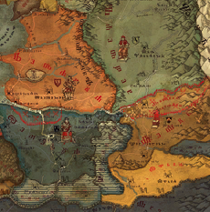 - Basta osservare una mappa o avere delle nozioni geografiche per accorgersi subito che la Valle del Pontar e un luogo strategicamente importante, in quanto tocca i confini di Temeria, Redania, Kaedwen e Aedirn. Come afferma il proverbio, "Chi controlla la Valle del Pontar controlla il Nord", il che spiegherebbe l'interesse e le campagne militari organizzate dai regni sopra citati. Durante questi scontri, di natura e origini differenti, il Pontar si e sempre tinto di sangue. Le guerre per gli interessi politici e i privilegi commerciali dei mercanti si sono intrecciate ai pogrom, alle guerre elfiche per la liberta e alle insurrezioni dei baroni di frontiera. Il tutto condito da un'occasionale rivolta dei poveri, che costringeva spesso le fazioni in lotta a unire le forze per arrestare le folle assetate di sangue. Come sicuramente non sfuggira al lettore, quest'area sta per essere di nuovo testimone di eventi importanti e cruenti.