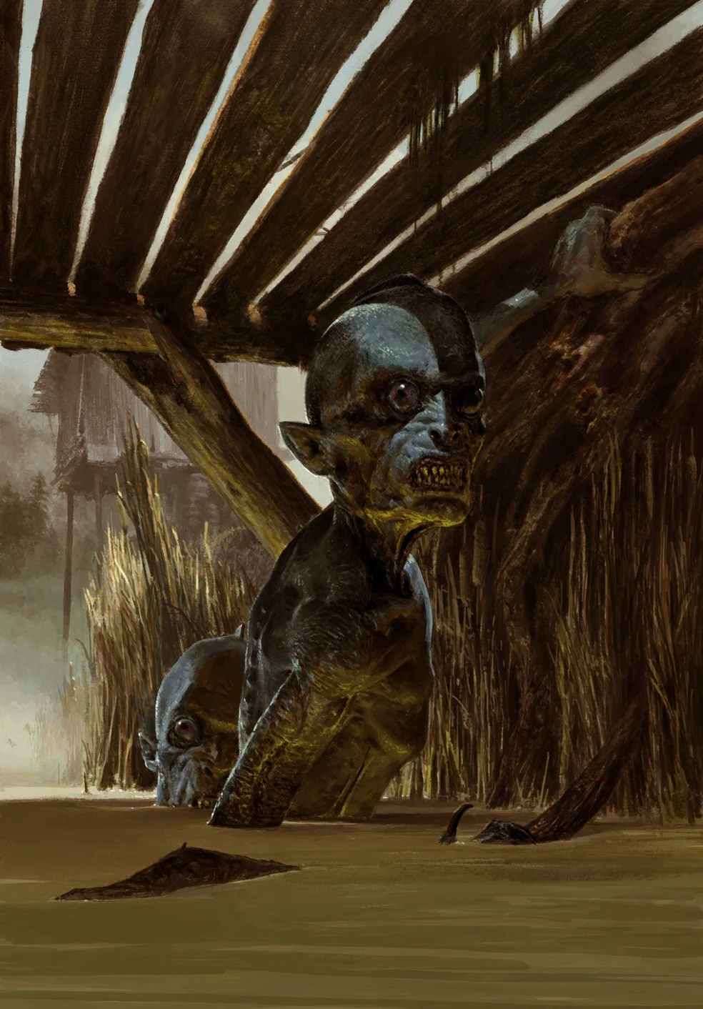 Os afogadores são criaturas perversas que emergem das profundezas dos rios e pântanos, trazendo consigo o cheiro da morte e a promessa de um destino terrível para aqueles que ousam se aproximar de suas águas traiçoeiras.