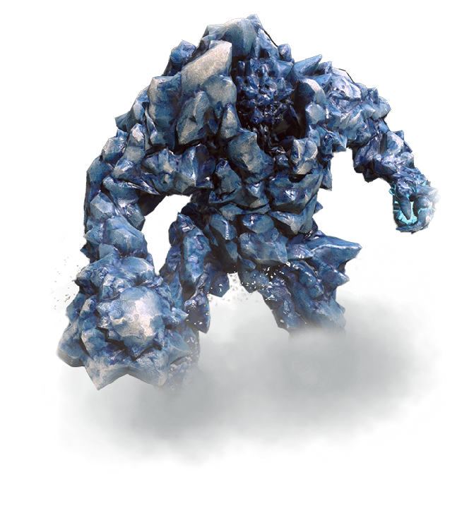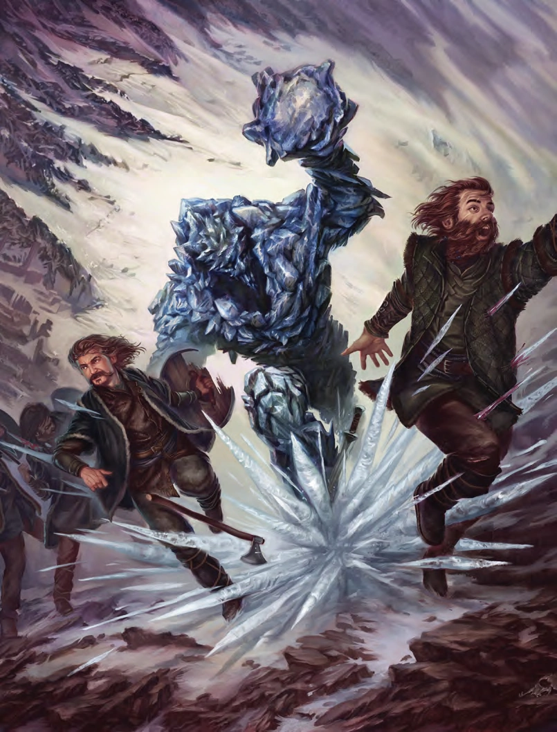Um elemental do gelo é uma massa de água congelada animada por magia. Sem consciência ou vontade própria, esse elemental é infinitamente obediente às ordens do mago que o criou. Essas ordens costumam conter apenas uma palavra: mate.