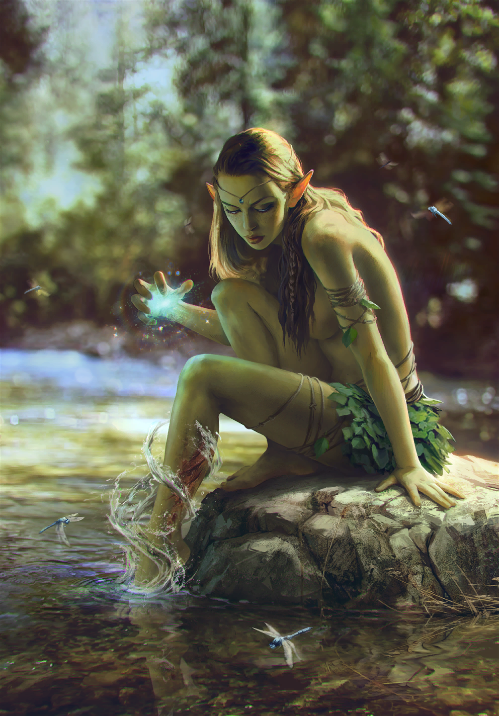 Окрім сил природи, головна цілителька вдавалася до допомоги лісової води та цілющих коренів – часто вона вибирала відоме поєднання конинхелі та пурпурового живокосту. Втім, найсерйозніші рани гамадріаді вдавалося зцілювати лише завдяки своїм винятковим здібностям.