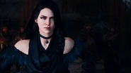 Познайомилася з відьмаком Ґеральтом із Рівії, коли той шукав спосіб врятувати свого друга, барда Любистка від наслідків зустрічі з джином. Ця зустріч стала початком їхнього кохання.