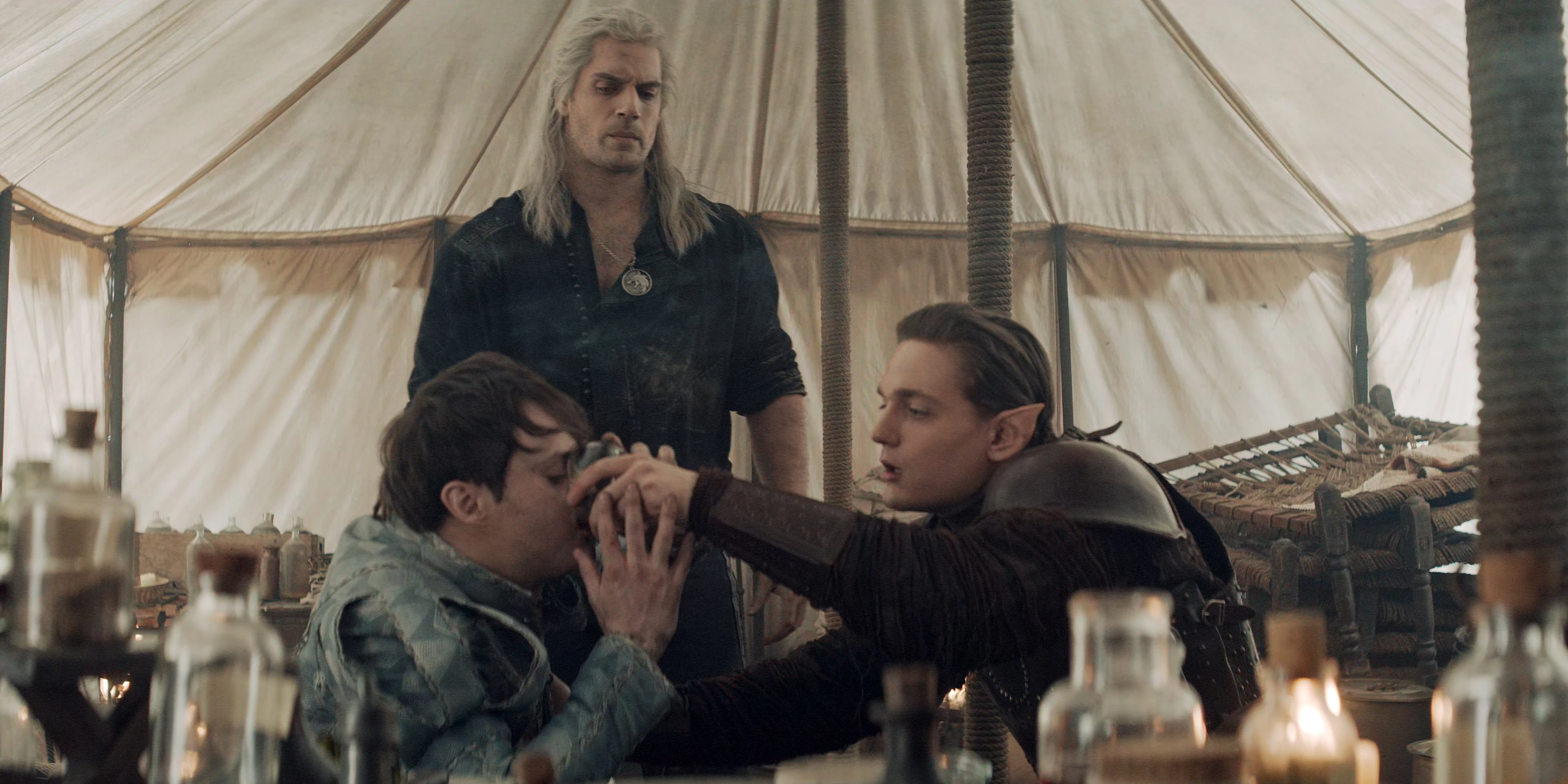 Зустрівшись вперше, Ґеральт наполягає на тому, щоб Єннефер вилікувала Любистка від його рани, нанесеної джином. Вона вимовляє вголос «рагамаффін», що миттєво знімає примус з оргії, і всі повертаються до тями й розходяться. Єннефер доглядає за Любистком і занурює його в цілющий сон, приділяючи час, щоб прийняти ванну з Геральтом.
