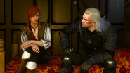 Пізніше, коли Ґеральт був поранений у бою з найманцями, медичка обробляла його поранення.