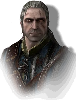 - Я міг чимало розповісти про це всесвітньо відомому мисливця на чудовиськ, якого Старша Мова кличе Ґвинблейдд, а наш новий, не менш благородний - мова іменує Білим вовком. Ґеральт із Ривії - особистість виняткова. На перший погляд він звичайний рубака, мисливець, нехитрий і простецький виконавець брудних справ. Але тільки придивись — і перед тобою відкриється людина небувалою глибини, незвичайного світогляду і величезного досвіду. На поверхні він замислений і грубуватий мовчун, але трохи глибше лежить ціле море доброти, радості і готовності в будь-який момент прийти на допомогу друзям — і слушною порадою, і гострим мечем. Він різкий, неотесаний і часом ходить в справжніх лахмітті і все ж користується незмінною прихильністю прекрасної статі. Коротко кажучи, Ґеральт - ходяче протиріччя.