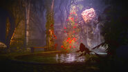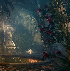 Cáelmewedd (meaning Quiet Child in Elder Speech) was once a beautiful and glorious Aen Seidhe complex now only known as elven ruins. It lies near Flotsam Forests in Kingdom of Temeria (likely Ellander duchy). The baths themselves are below a garden with a statue of Eldan and Cymoril.