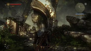 Before leaving, a crumbling wall behind vines can be broken with Aard to reveal a slightly larger room containing a chest with orens and throwing knives. This is allegedly a story location later on however it can be explored beforehand at least on the most recent EE edition of the game.