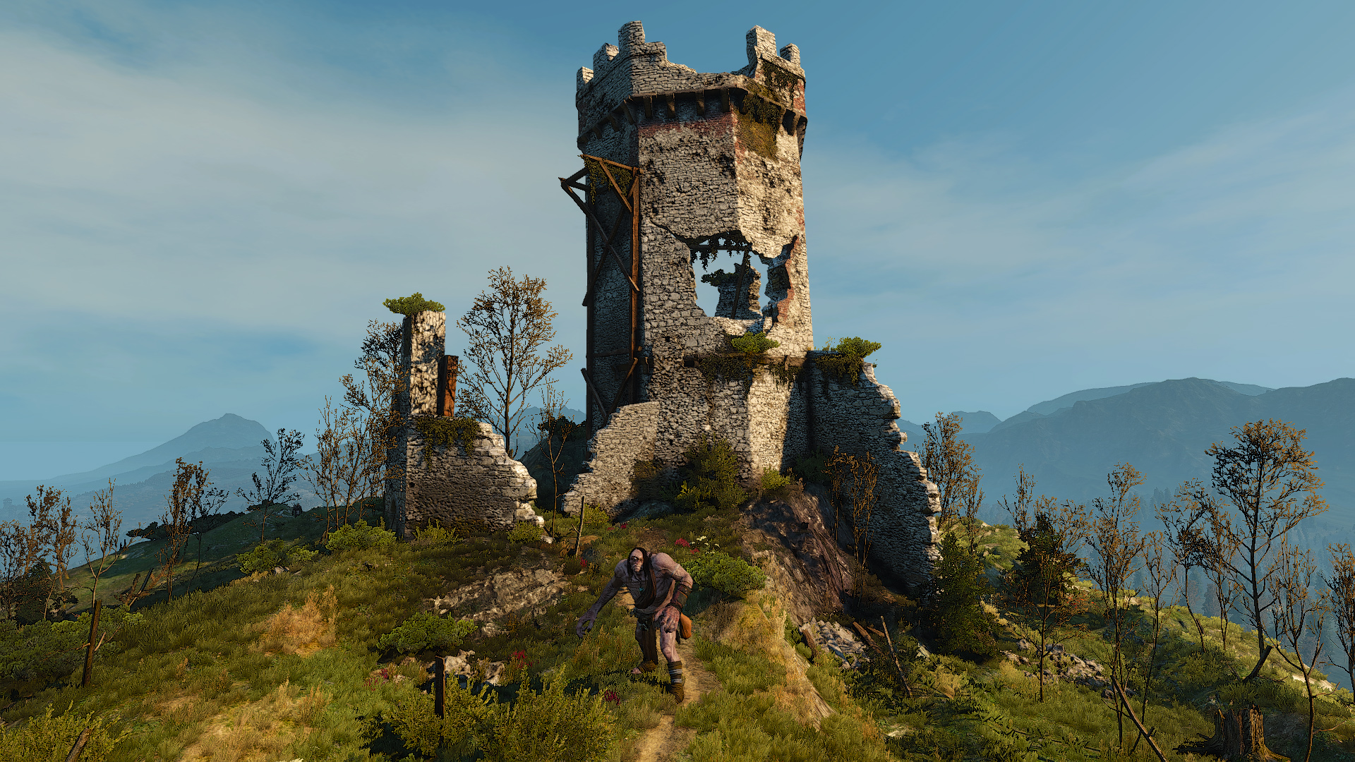 Destroyed Bastion is a location in southeastern Velen. Now in a state of disarray, it is home to a solitary cyclops.