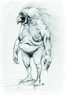 Like the noonwraith, this monster is strongly rooted in Slavic lore. It began with a name mentioned by Sapkowski; the idea that the devourer should resemble an old, menacing woman followed soon after. The artist strove to create the ugliest possible hag, and thus was born the devourer. In its final form, the devourer is a hag with a wonderfully hooked nose, drooping breasts and a swollen, wrinkled belly. Its open mouth curves into a spiteful grin, and the protruding tongue and pulled back hair make it resemble a dog panting after a chase.