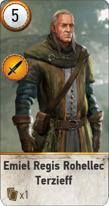 Emiel Regis Rohellec Terzieff is a neutral close combat gwent card in The Witcher 3: Wild Hunt.