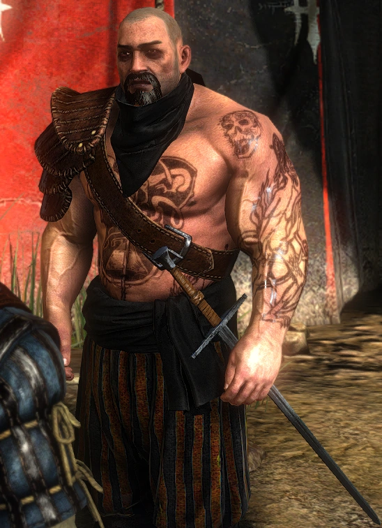 Kennet was the youngest member of the original three Crinfrid Reavers, a group of mercenaries hired by King Niedamir to take part in the hunt for, Myrgtabrakke a dragon outside Barefield. He was known for his expertise with a two-handed sword. He fought alongside Gar and Boholt, their leader.[1] By the time of 1271, Kennet has seemingly become the leader of the Reavers and addressed Geralt outside Foltest's army camp.[2] A few years afterward, the Reavers grew in numbers with Kennet, Boholt, Gar and, to some extent, Newboy remembered as quite a legends.[3]