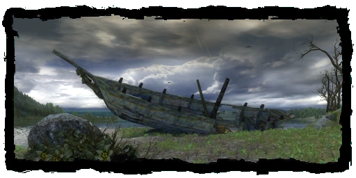 The boat landing lies to the north of the old manor. It is the last part of the island that Geralt sees. It is where he meets his ally, either Yaevinn, Siegfried or Triss, to take a boat back to Vizima to report the results of the Salamandra mission to the king. A little exploring reveals a campfire and wrecked vessel which is beached not far away. There is a place of power near the wreck.
