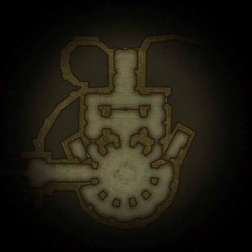 The Monastery is the ancient temple within La Valette Castle, possibly older then the keep itself, connected with the solar by a long stone bridge. It's a large circular building, on two floors.