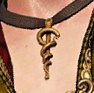Aesculapius is a mythological figure after whom the Rod of Aesculapius on the Merchant Street is named. Shani wears an amulet depicting its symbol, a snake entwining a staff.