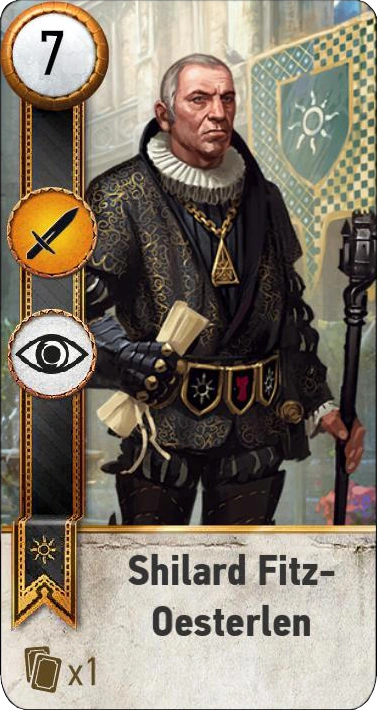 Shilard Fitz-Oesterlen is a close combat gwent card in The Witcher 3: Wild Hunt and part of the Nilfgaardian Empire deck.