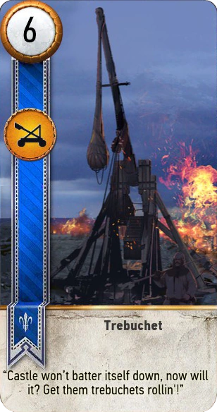 Trebuchet is a siege gwent card in The Witcher 3: Wild Hunt and part of the Northern Realms deck.