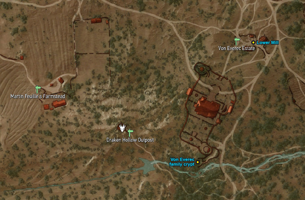 Von Everec Estate is a large estate in Redania and is the ancestral home of the von Everec family and includes sprawling gardens, a large manor, and even its own family crypt behind the property. However, the once great home now sits abandoned and has fallen into disrepair.