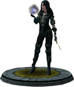 Yennefer was a playable hero in the now defunct MOBA, having been added with the Season 2 Update on 29 June 2015. Her alternative skin was called Ravenlord's Embrace and one of weapons was called Dark Moon weapon.